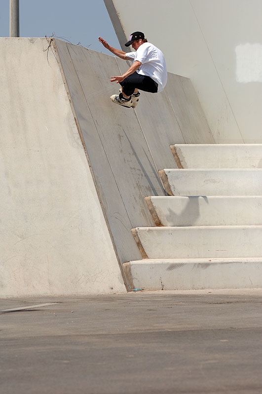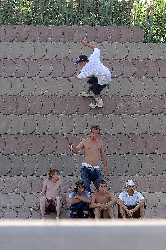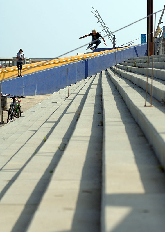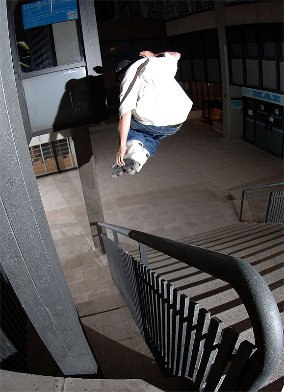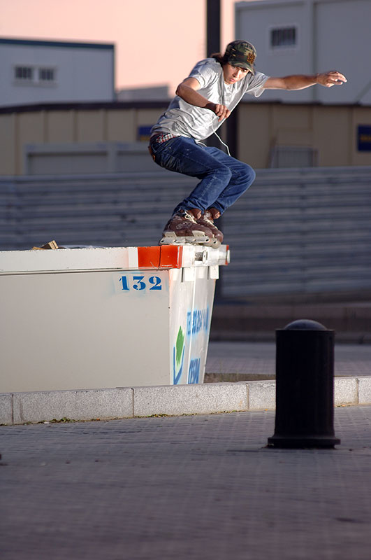 К вечеру, мы вернулись на нашу старую станцию Terragona, чтобы покататься по оставленным на потом местах. Вообще, вторник был день линеек трюков. Все без исключения отсняли себе по нереальному сочетанию прыжков и слайдов. Итак, Зюк захотел впрыгнуть в дырку. Сделать gap и просочится в ограниченное пространство. Было столько нервов, что Андрей, в конце концов, отдал право прыгнуть Леонову. За Женю не было так страшно, было страшно за витрину, которая стояла прямо напротив приземления. Славу богу все обошлось. Сняв еще отличную обрывистую периллу, мы счастливые отправились домой.