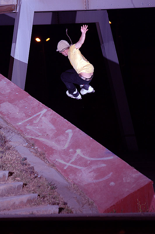 Решили поехать на парапеты, имеющие наклонную форму, т.е. на них можно заезжать, а потом скользить. Кирилл жжег, Зюк два раза упал на бок и у него из него вылезло "чудовище". Рамзес решил сделать transfer из плоскости грани, через дорогу в маленький наклон, но видимо что-то не заладилось, и сразу же появились менты. Они были добрыми, просто предупредили, что сейчас сделают круг и чтобы нас тут не было. Само совершенство!