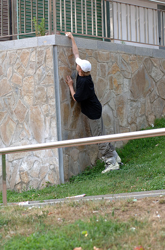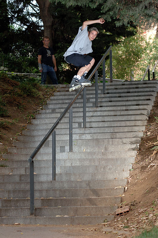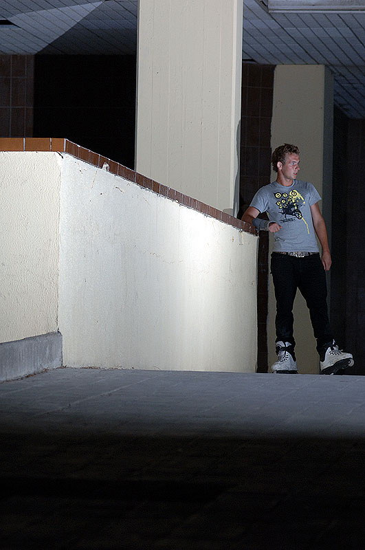 Сделав всё нужное и со скрипом сердца отдав 50 евро за рамы, мы осознали, что ехать то кататься некуда. Единственным снятым трюком дня стал nugen от Леонова по уходящей вверх толстой перилле и вылетом высотой в три Жени. Приземление было в проезжую часть, что еще сильнее осложняло ситуацию.