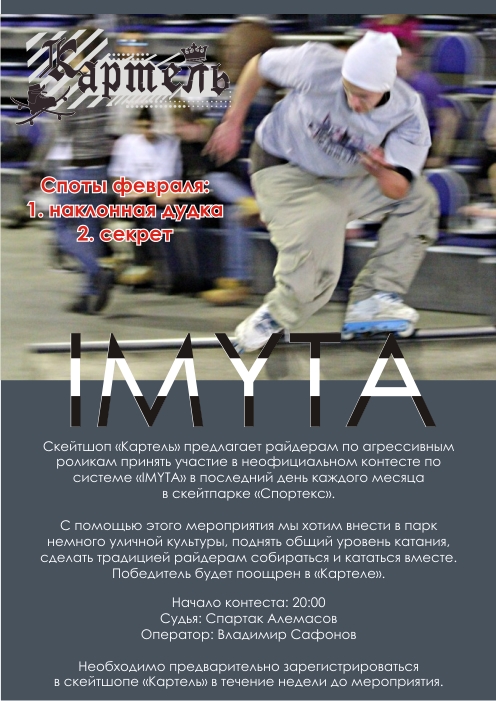 ВНИМАНИЕ! Необходимо предварительно зарегистрироваться в скейтшопе «Картель» в течение недели до мероприятия.